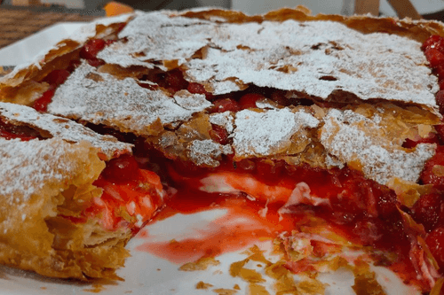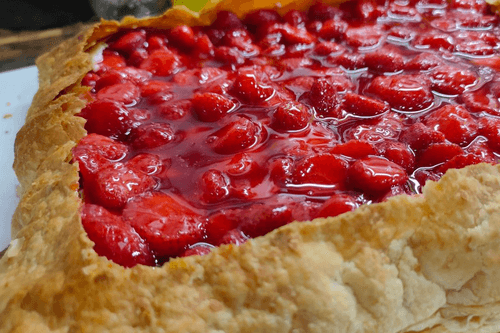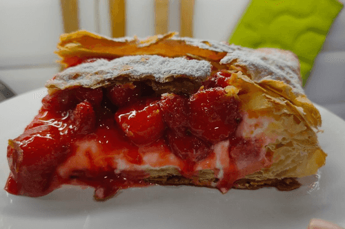 Пирог с клубникой и сливками — это воплощение нежности и сладости европейской кухни. Его корни уходят в традиции французской и английской выпечки, где гармония сливок и ягод создаёт изысканный десерт. Хрустящее слоёное тесто становится идеальной основой для воздушного сливочного крема, который дополняется ароматной клубничной начинкой, уваренной до насыщенного вкуса. Пудровая сладость завершает композицию, добавляя нотку элегантности. Этот пирог не только радует вкусом, но и приносит ощущение уюта, особенно в сопровождении чашки ароматного чая или кофе. Он идеально подходит как для семейных вечеров, так и для праздничного стола, где его насыщенный ягодный вкус и нежная текстура оставят приятное впечатление. Каждая ложка этого десерта раскрывает богатство сливочного и фруктового наслаждения.