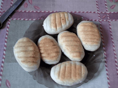 Make balls from dough with wet hands, flatten them, and bake the resulting flatbreads on a well-heated pan.