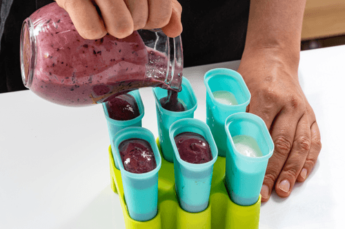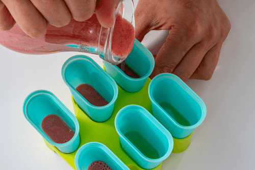 Fill the ice cream molds one third with strawberry mixture and place in the freezer for 30 minutes.