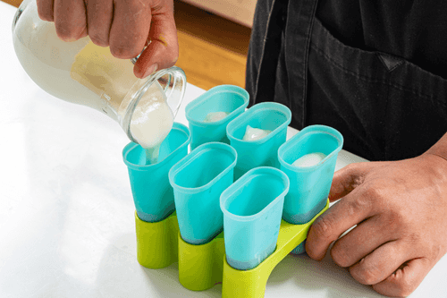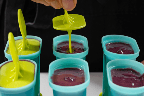 Insert the sticks and place in the freezer until fully frozen for 4 hours.