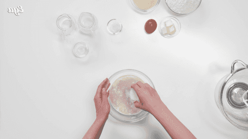 Slightly warm the milk with water, mix them in a bowl with sugar and yeast. Leave for 5 minutes.