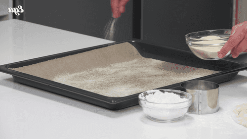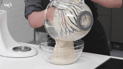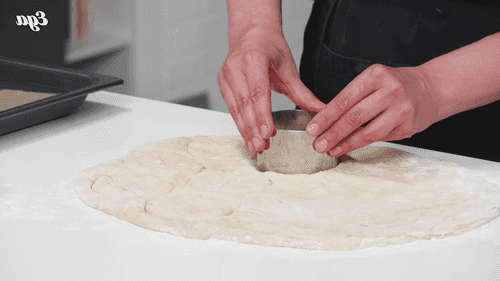 Carefully lay the dough on a floured surface. Use your hands to spread the dough to about 3 cm thick.