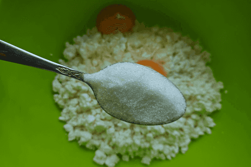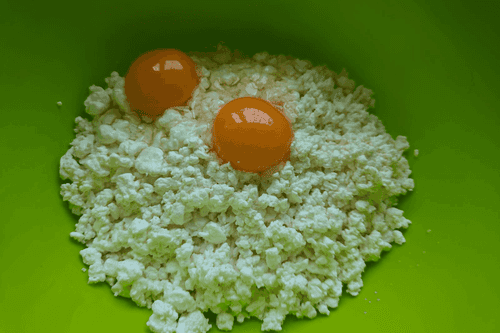 Place the cottage cheese mixture in a dish and put it in a preheated oven at 190 degrees. Bake for 30-35 minutes until a golden crust forms.
