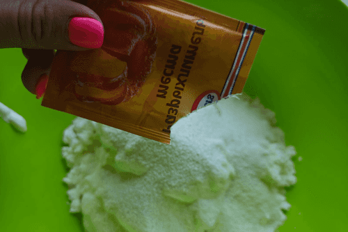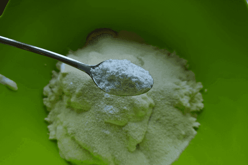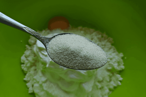 Add baking powder and a pinch of salt. Mix everything thoroughly.