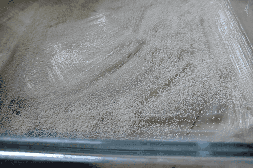 Grease the baking dish with butter and sprinkle with the remaining semolina.