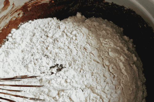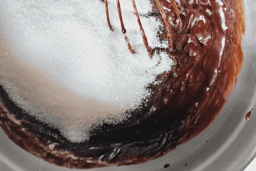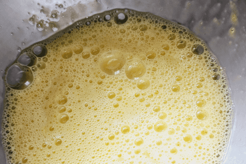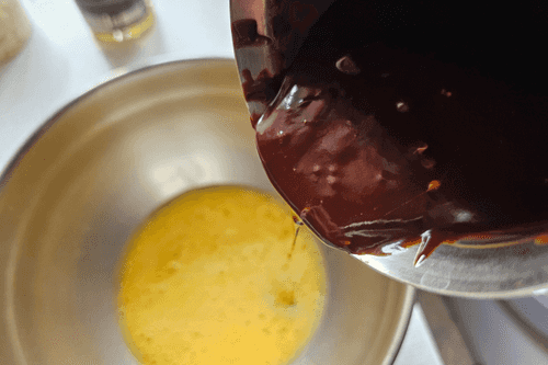 Pour the chocolate into the eggs in a thin stream, constantly stirring.