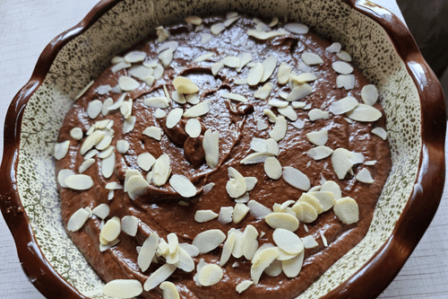 Sprinkle with almond flakes. Bake in the oven at 200 degrees for 30 minutes.