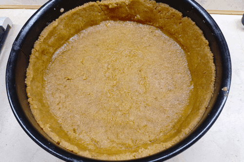 Spread the remaining dough along the edges and use a glass to form the borders, bake the pie base for 10-15 minutes.