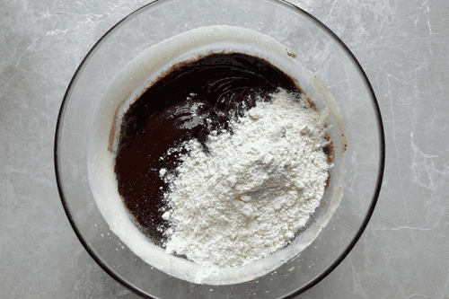 Add flour and baking powder.