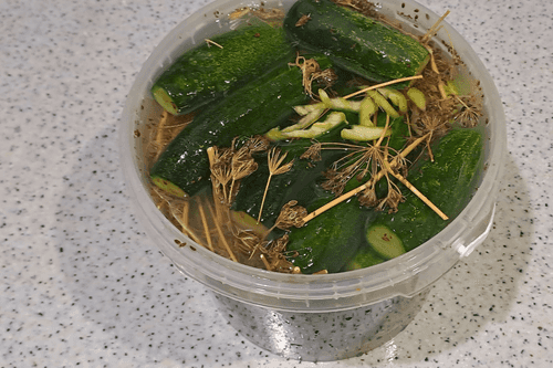 Cucumbers can be served at the table the next day. Store in the refrigerator.