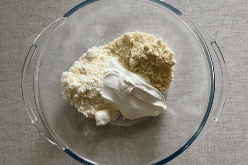 Combine coconut and almond flour, sour cream, and mix thoroughly.