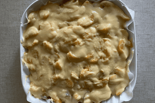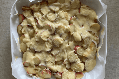Top with some dough and apricots.