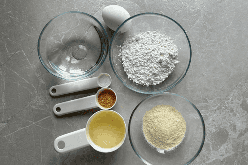 Put water, egg, vegetable oil, salt, and onion in a bowl.
