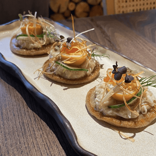 Rye pancakes with herring forshmak