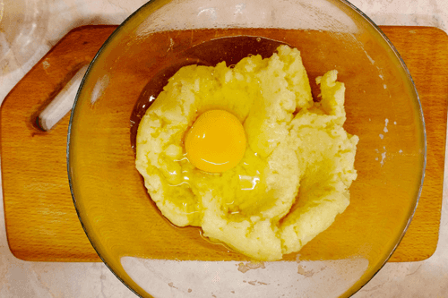 Once the dough starts to stretch, stop adding eggs. Usually, this is 4-5 eggs.