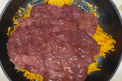 Add the liver, sauté the ingredients, stirring regularly, until cooked for 10-15 minutes.