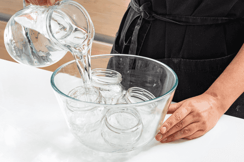 Pour boiling water over the jars where the cream will be prepared.