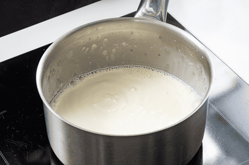 In a small saucepan, bring the cream and milk to a boil.