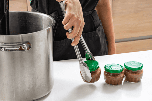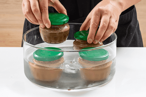 Submerge the jars in water with sous-vide and cook for 45 minutes. After the time is up, remove the jars and let them sit at room temperature for 15 minutes.