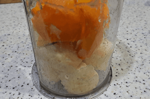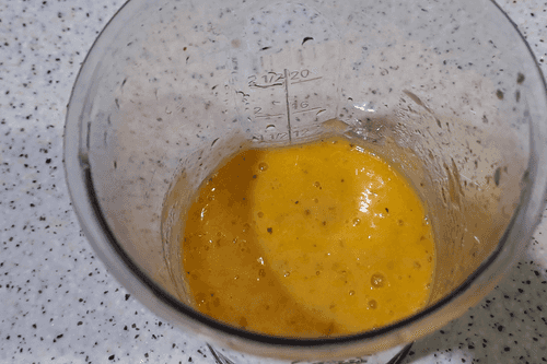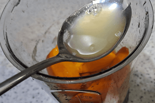 Pour 1 tablespoon of freshly squeezed lemon juice into the blender bowl.