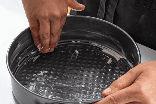Grease a detachable mold with a diameter of 22 cm with butter.