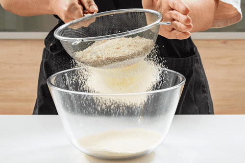 Sift both flours, baking powder, and salt.