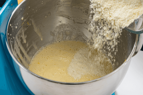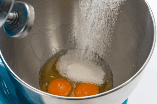 In a mixing bowl, beat the eggs with sugar until pale yellow, about 3 minutes.