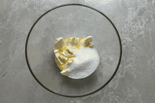 Put sugar, a pinch of salt, and soft butter into a bowl.