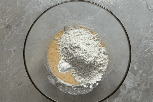 Add flour and baking powder.