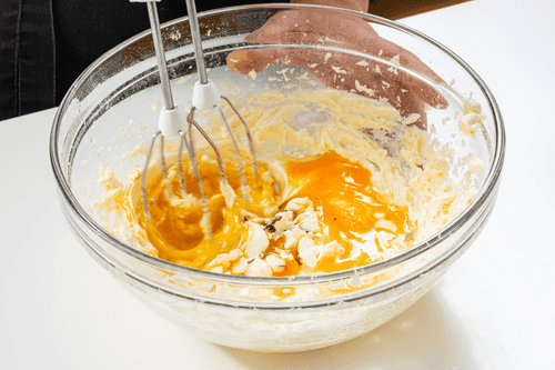 Add eggs and 0.5 teaspoon of vanilla paste, mix.