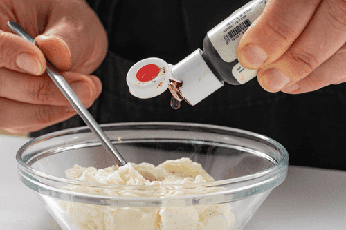 Set aside 2 tablespoons of cream and color it with your favorite food dye. It can be used to decorate the cake or make inscriptions.