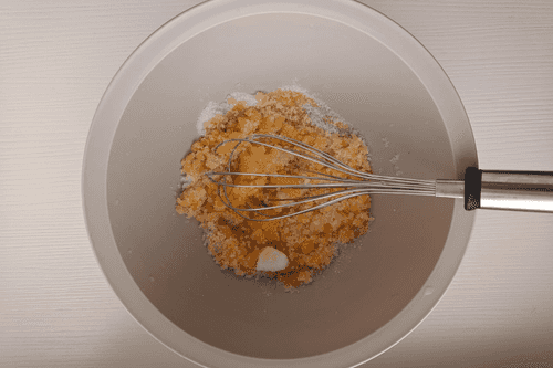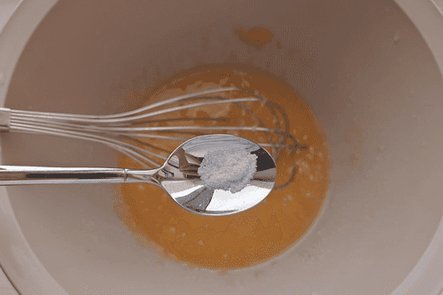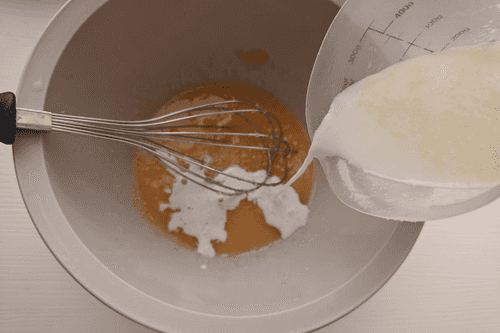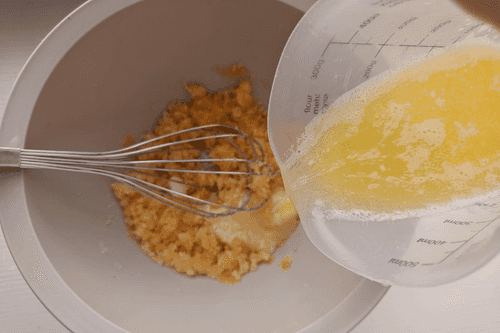 Melt 100 grams of butter and pour only half into the egg mixture. Mix well.