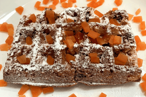 Remove the waffles from the mold, decorate with powdered sugar and pieces of papaya.