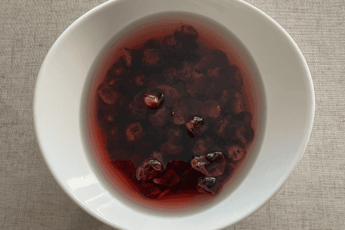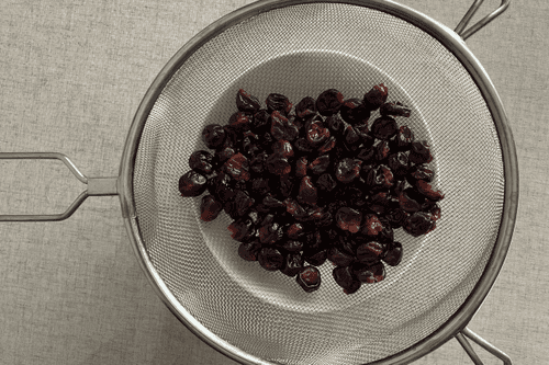 Pour boiling water over dried cherries and let it sit for 15 minutes.