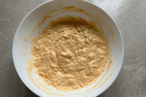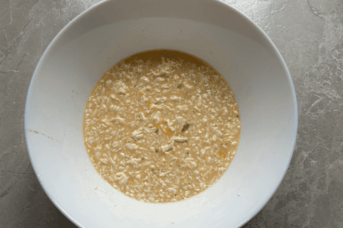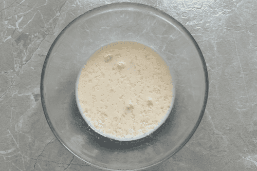 Pour the remaining milk into a bowl, add eggs, butter, cinnamon, and sugar.