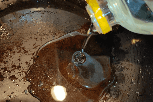 Pour vegetable oil into the pan and heat it up.