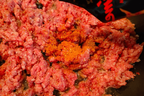 Spread the minced meat.
