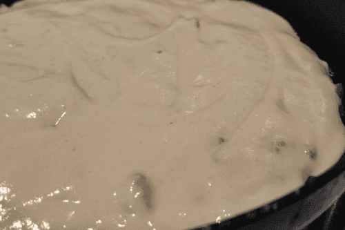 Cook covered for about 30-40 minutes on very low heat until the top layer of the dough is dry.