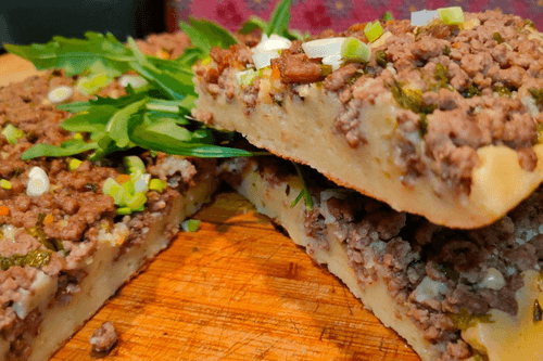 Meat pie in a skillet is a cozy dish that combines simplicity of preparation and rich flavor. Its roots go back to home cooking traditions where the skillet serves as a universal baking tool. Soft dough soaked in kefir forms a tender base, while aromatic minced meat with onions and spices fills the pie with juiciness. This pie is perfect for family lunches or warm gatherings with friends. It can be served with herbs and sauces to highlight the richness of flavor. It is made without an oven, making it accessible for any kitchen space. With its golden crust and rich aroma, this pie quickly becomes a favorite treat that creates an atmosphere of comfort and home warmth.