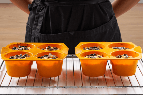 Sprinkle the muffins with seeds.