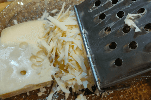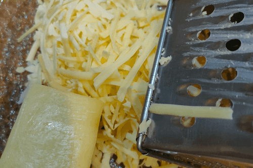 Grate the cheese on a coarse grater.