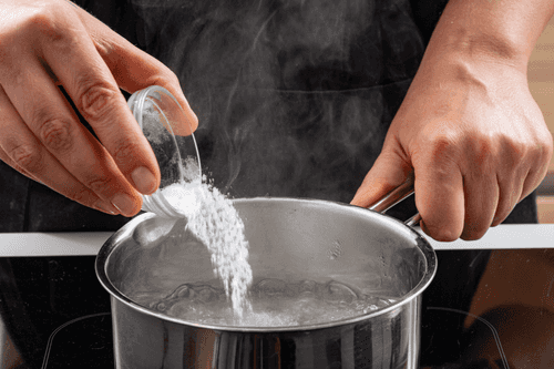 Boil the water, then add baking soda after boiling and stir until dissolved.