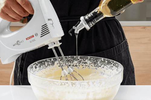 At the end, add vegetable oil to the dough.