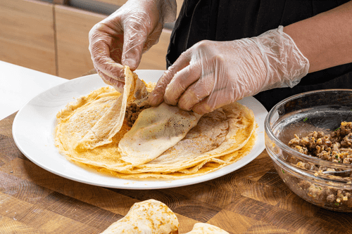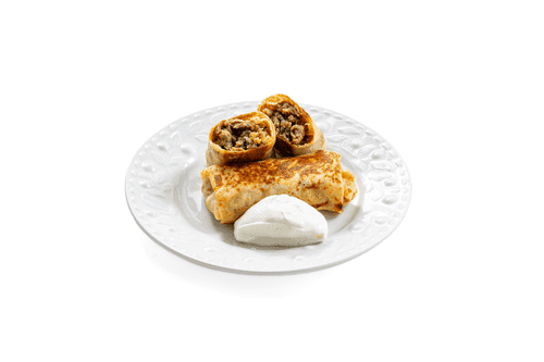 Stuffed pancakes are a classic dish of Russian cuisine that combines thin, delicate pancakes with hearty meat filling. The history of this recipe dates back centuries when pancakes were an integral part of Slavic celebrations and a symbol of the sun. Here they are paired with aromatic beef mince, onions, garlic, and spices to create a harmonious flavor. A light crust formed during frying adds a textural twist. These pancakes are usually served hot with a dollop of sour cream, making them even softer and juicier. They are perfect for a cozy family dinner or festive table setting, delighting with their rich taste and appetizing appearance.