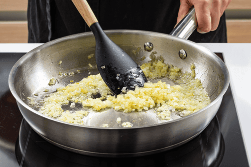 In a deep skillet, heat vegetable oil and sauté the onion until soft and golden. Add garlic and sauté for 30 seconds.