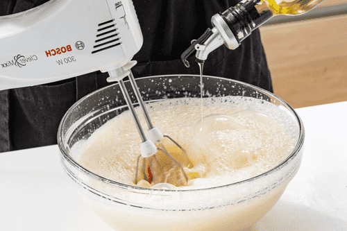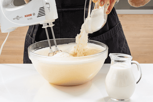 At the very end, add 2 tablespoons of vegetable oil. Let the dough rest for 10 minutes.
