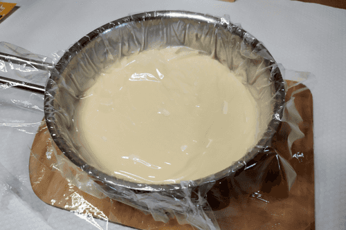 Cover the cream with food wrap in such a way that the wrap touches the surface of the cream. Let it cool.