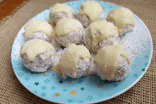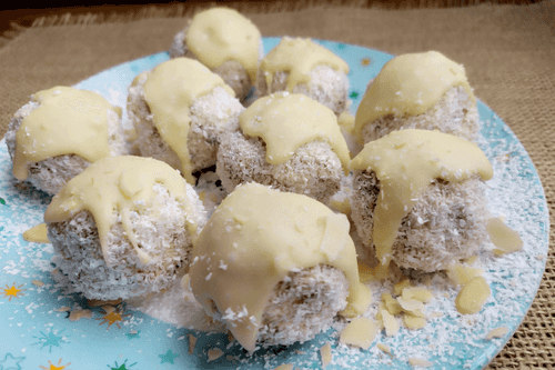 Coat in coconut flakes.