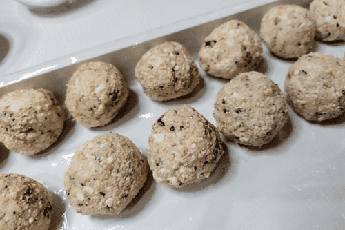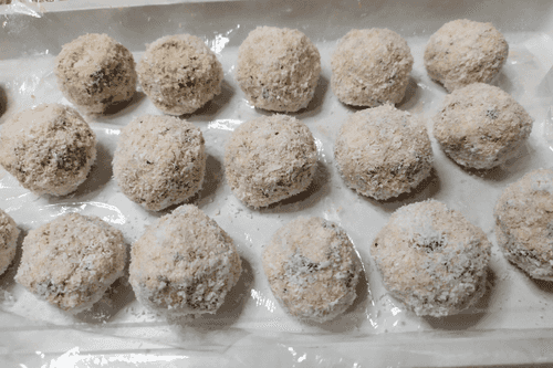 Form balls the size of a walnut from the cottage cheese mass.