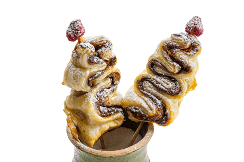 Layered Christmas trees with chocolate paste are a magical treat that awakens the atmosphere of celebration and coziness. This signature dessert combines the crispy texture of puff pastry with the delicate, rich sweetness of chocolate paste. Its preparation resembles creativity: each tree is assembled by hand, forming elegant layers. The history of such sweets is rooted in winter holiday traditions when baking becomes part of family rituals. The trees are baked to a golden crust and then decorated with fresh berries and powdered sugar, creating the impression of a snow-covered forest. They are perfect for festive tea parties, delighting not only with their taste but also with their magical appearance. These miniature sweet trees are a true symbol of home comfort, bringing joy to everyone who tries them.
